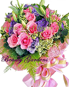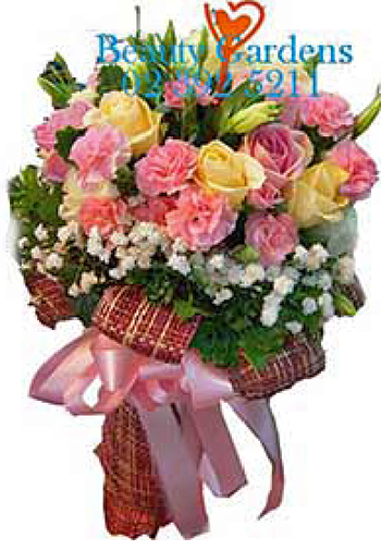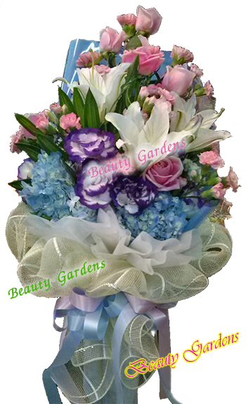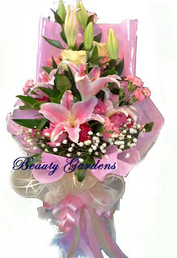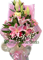 ช่อดอกไม้ด้านเดียว สีชมพู ลิลลี่ คาร์เนชั่น ยิปโซ |